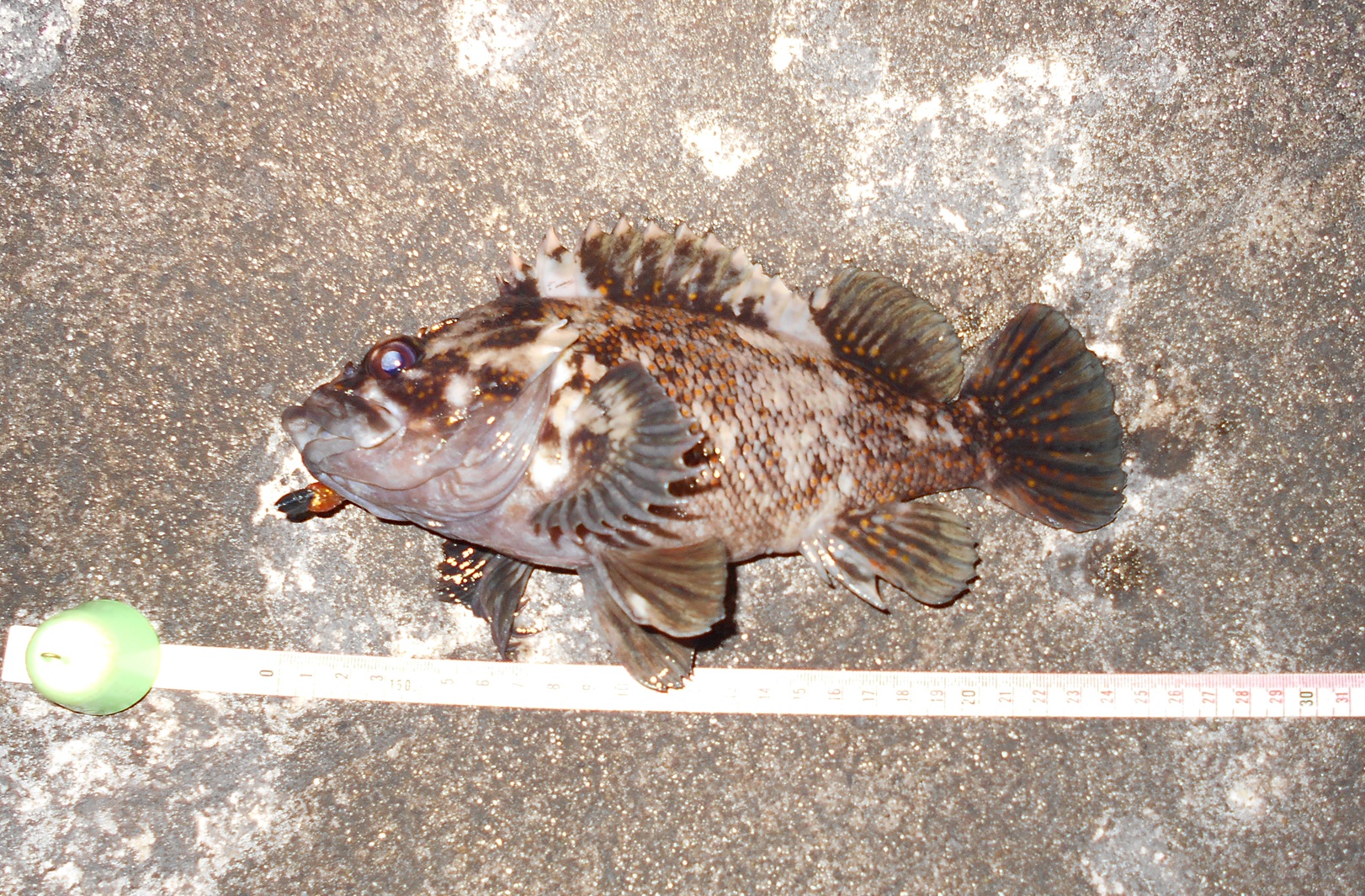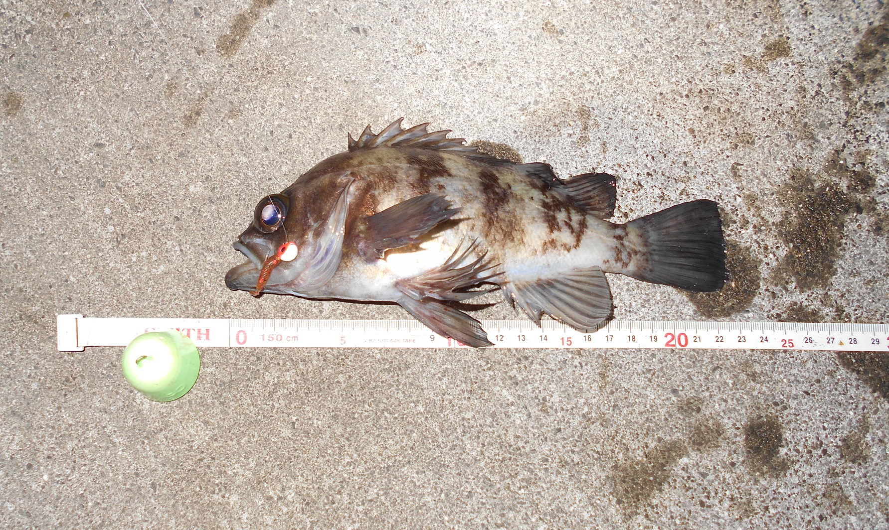 - 暗くなってから、メバルを狙って頑張りましたが、なんとかオオゴンムラソイを1匹釣っただけで、アタリらしいアタリはありませんで
