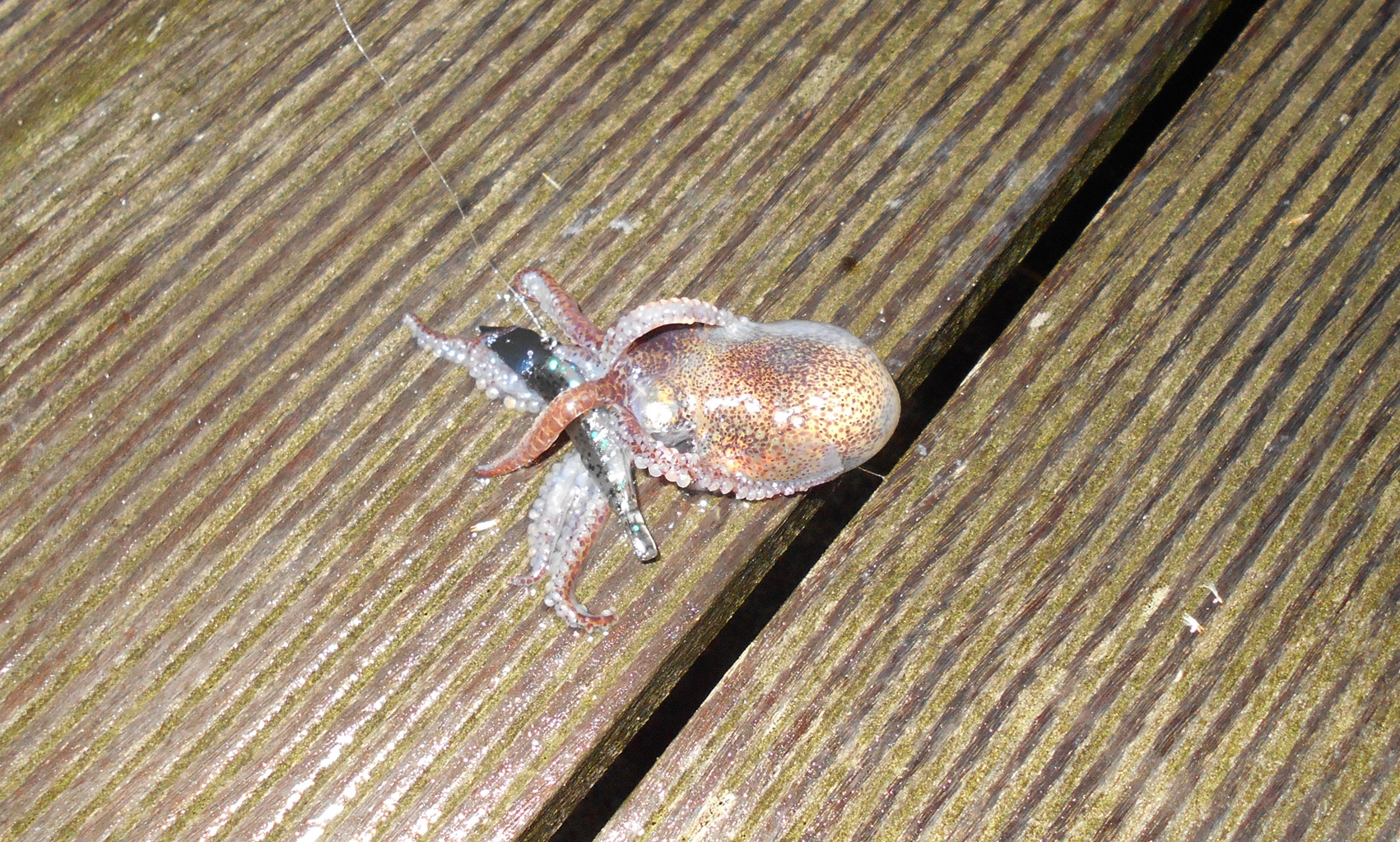 - のが、何と小さいタコでした。まさかダートで釣れるとは……。しっかりハネエビを抱えていたので、唯一やる