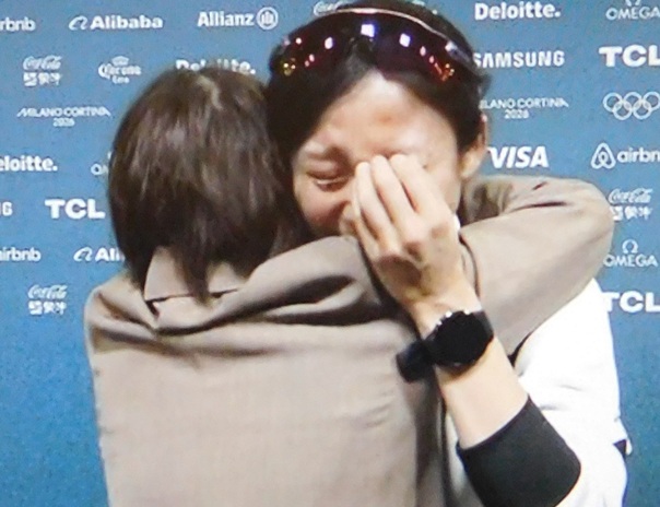 - ▲ 〝 SP 〟での失敗を挽回して、大逆転の金メダル! 感極まった木原選手を