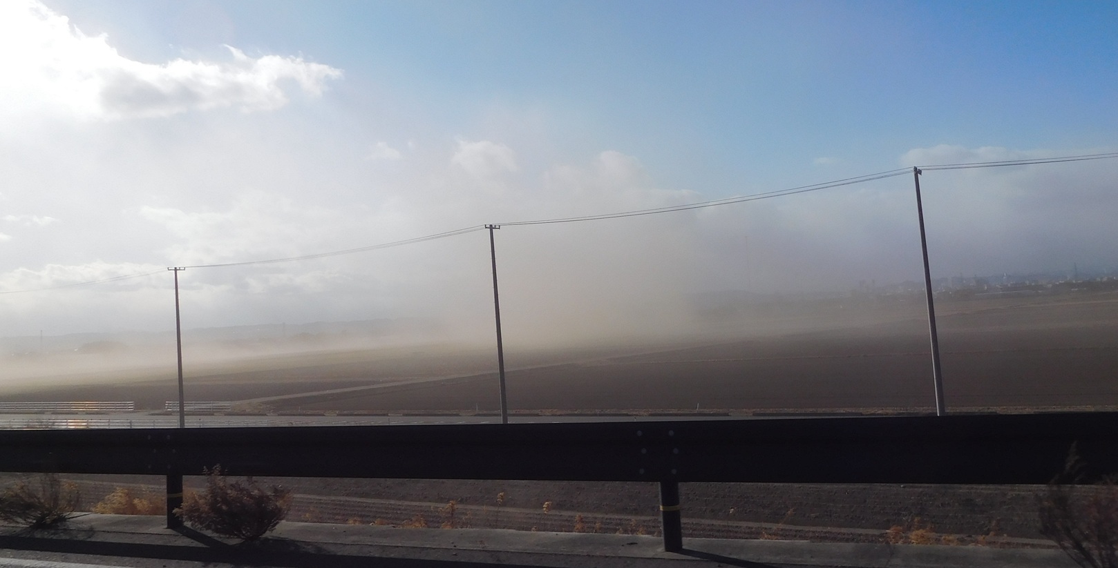- 今日は、沿岸部をまわる用事があり、塩釜亘理線を南下しました。強風で田畑の砂が巻き上げられていま
