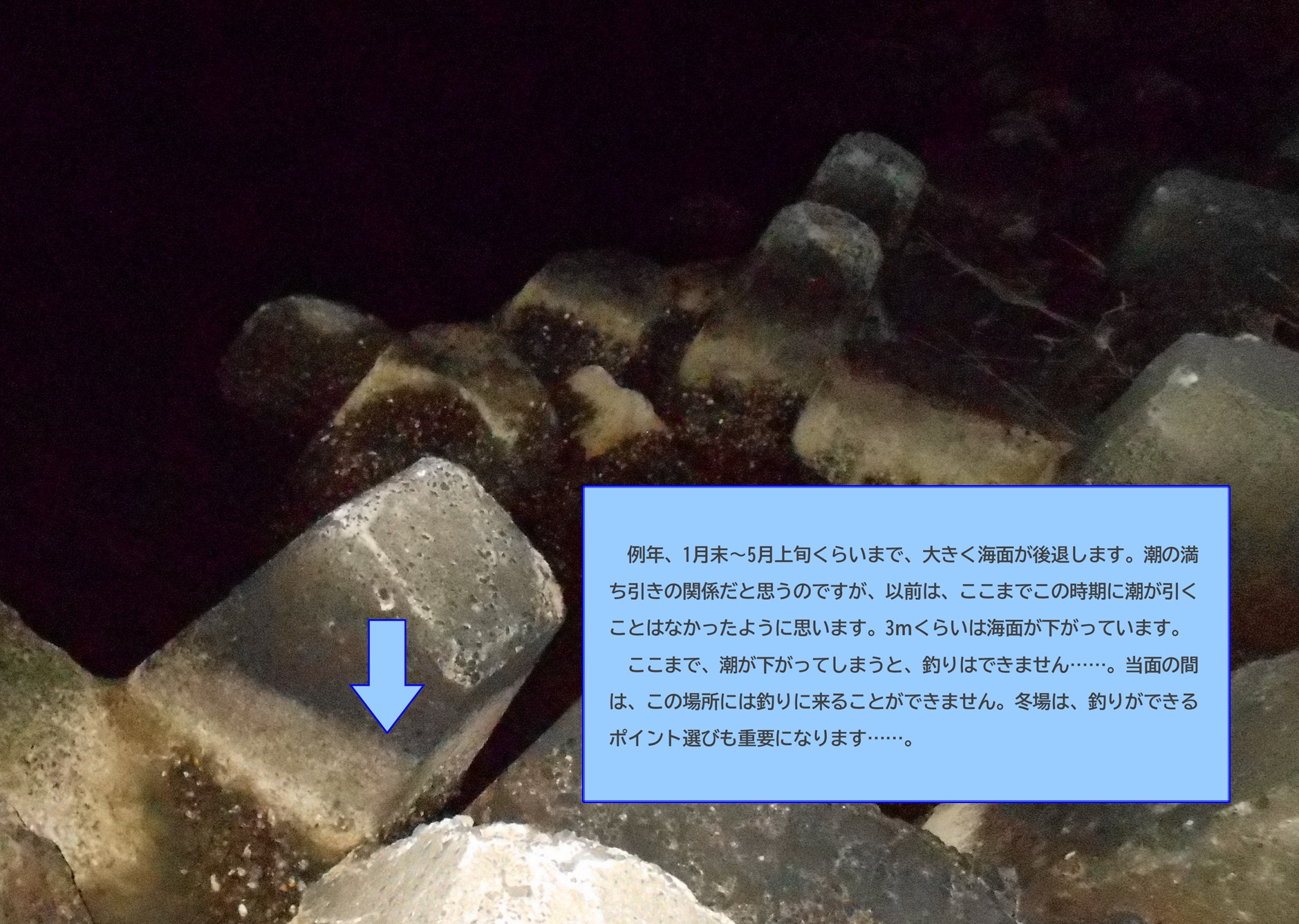 - と海面が後退するのですが、ここまで後退してしまうと、なかなか釣りにはなりません。小さなメバルに遊